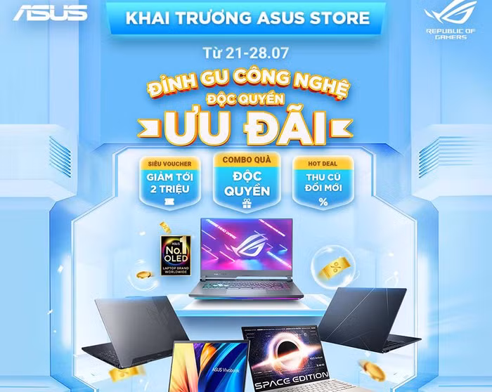 Trong tuần đầu tiên ra mắt trang mua sắm trực tuyến ASUS Store, khách hàng sẽ có cơ hội nhận ngay combo độc quyền, cùng nhiều voucher từ 500.000 lên đến 2.000.000 VNĐ, cũng như chương trình “Thu máy cũ, nâng đời máy mới” trợ giá lên đến 5% và nhiều khuyến mãi hấp dẫn khác.