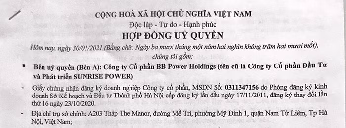 Được biết, Công ty Cổ phần BB Power Holdings đã uỷ quyền cho ông Nguyễn Đức Đăng - Chủ tịch HĐQT, Tổng Giám đốc DAFCO theo hợp đồng uỷ quyền ký ngày 30/01/2021, để thay mặt và nhân danh BB Power Holdings toàn quyền thực hiện các công việc như sau: