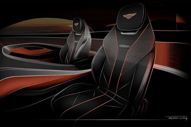 “Batur Chevrons” độc đáo trên ghế được thêu tinh xảo bằng tay, sử dụng chỉ màu da cam Snap Orange, trong khi phần còn lại có một đường chỉ tương phản xuyên suốt. Các chi tiết mềm mại được hoàn thiện bằng một đường ống viền, có thể thủ công sử dụng lông vũ màu đen Beluga, đường ống màu cam Hyperactive Orange tới phần trung tâm ngồi và một lớp hoàn thiện màu cam Hyperactive Orange ở trên vô lăng lăng.