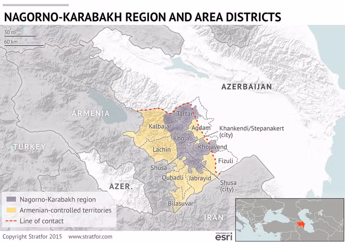 Cộng hòa Nagorno-Karabakh, chiến tuyến giáp ranh với khu vực do Azerbaijan kiểm soát