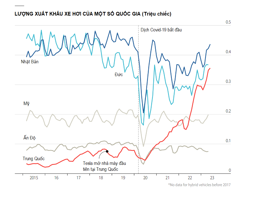 Doanh số bán hàng quốc tế dự kiến sẽ tăng hơn nữa vào năm 2023. Dữ liệu hải quan cho thấy quốc gia này đã xuất xưởng gần 2 triệu ô tô trong sáu tháng đầu năm, tức hơn 10.000 chiếc mỗi ngày.
