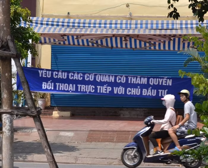 Tuy không có sự phản kháng nào diễn ra, nhưng nhiều chủ đầu tư vẫn căng băng rôn tỏ ý phản đối việc tháo dỡ này