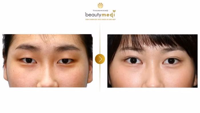 Sự thay đổi của khách hàng trước và sau khi cắt da chùng mí trên và chuyển mỡ bọng mắt mí dưới tại Thanh Hằng Beauty Medi.