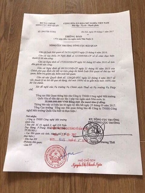 Tổng cục Hải quan khẳng định không ký ban hành Thông báo số 2945/TB-TCHQ ngày 09/5/2017 về việc nộp tiền vào ngân sách nhà nước, và Thông báo này là do các đối tượng làm giả với mục đích lừa đảo góp vốn.