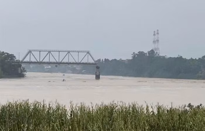 Camera hiện trường đã ghi lại được khoảnh khắc kinh hoàng trên vào lúc 10h sáng nay (9/9) tại cầu Phong Châu, nối liền 2 huyện Lâm Thao và Tam Nông (Phú Thọ).