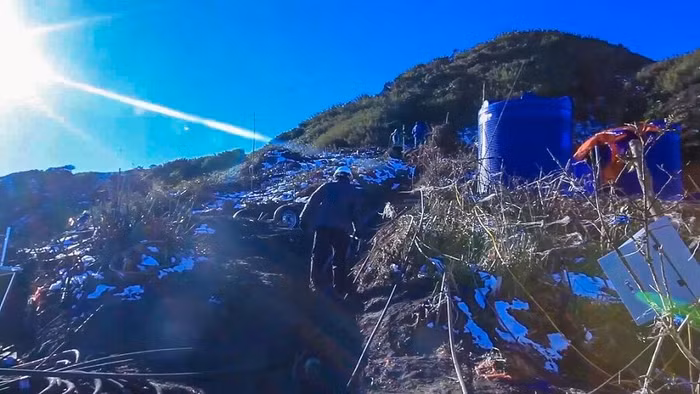 Tới điểm cách trụ chính chừng 500m thì vách núi đã bắt đầu hun hút. Tay cầm bộ đàm, mắt Hậu vẫn bám sát đường cáp đi. Đột ngột, Hậu thấy chới với. Chỉ vài giây sau, cậu trai trẻ biết mình đang bị trượt xuống vực sâu hun hút.