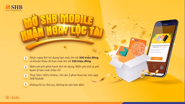 Theo đó, mỗi khách hàng đạt điều kiện lịch sử tín dụng và lịch sử giao dịch tốt sẽ nhận được lời mời mở thẻ tín dụng với hạn mức lên tới 300 triệu đồng và/hoặc lời mời đăng ký vay thấu chi hạn mức lên tới 500 triệu đồng. Hạn mức này được cá nhân hóa, phù hợp với tài chính của khách hàng tại SHB. Khách hàng chỉ cần mở app SHB mobile và thao tác 3 bước chạm để được cấp hạn mức vay thấu chi trong tài khoản cá nhân sau 2 phút hoặc nhận tận tay chiếc thẻ tín dụng chỉ sau từ 2 ngày.