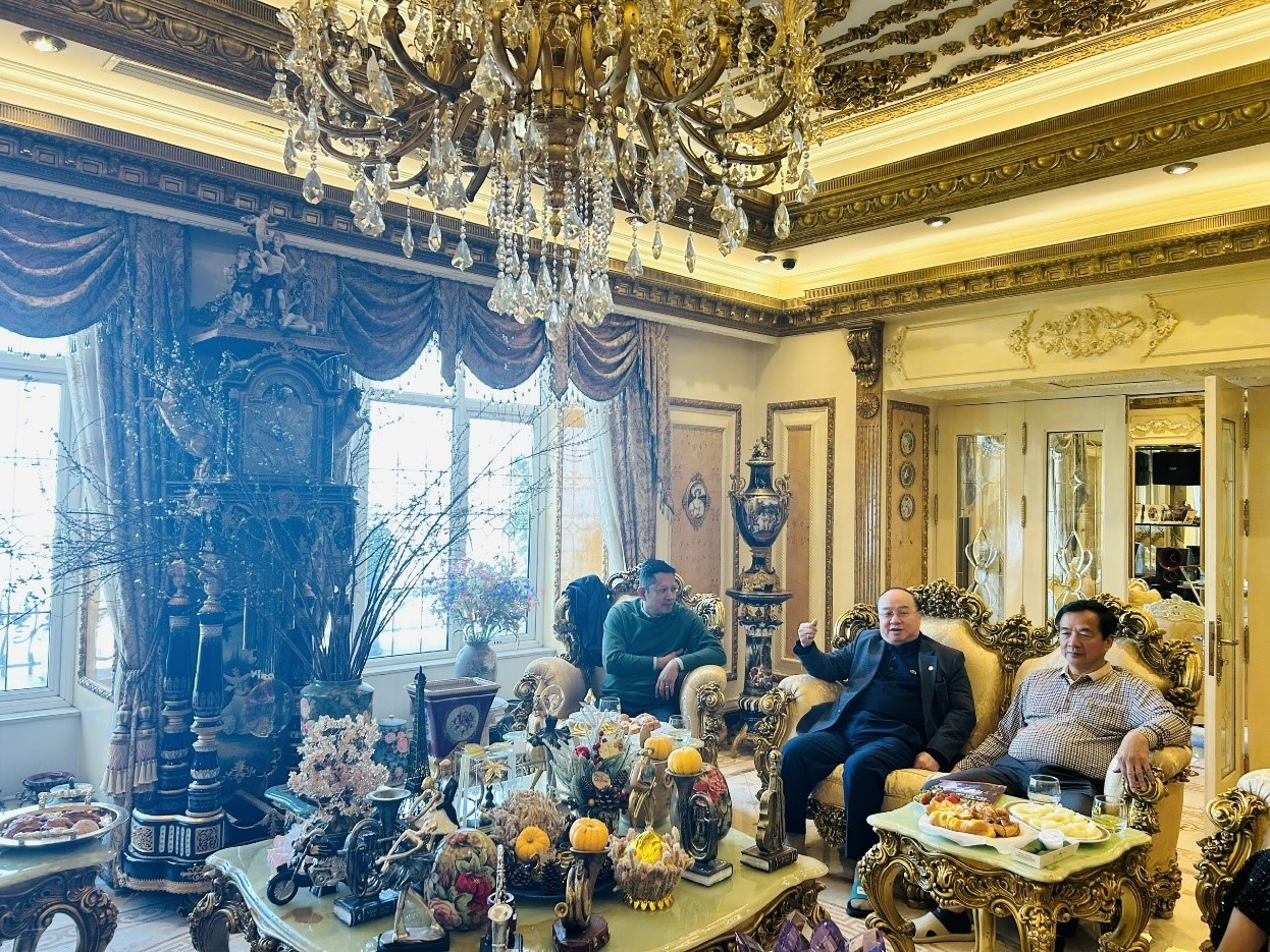 Bữa tiệc chiêu đãi được tổ chức tại tư gia của ông Lê Vĩnh Phúc và bà Nguyễn Thị Liễu, những doanh nhân đã có nhiều năm học tập, làm việc và sinh sống tại Liên bang Nga, đồng thời luôn dành tình cảm sâu đậm cho văn hóa và con người xứ sở Bạch Dương. Dấu ấn thời gian gắn bó ấy đã được thể hiện tinh tế trong không gian tổ chức, từ cách bài trí, tiếp đón đến phong thái giao lưu, tạo nên một bầu không khí vừa trang nhã, vừa gần gũi, đậm chất Nga.