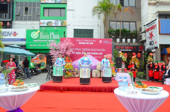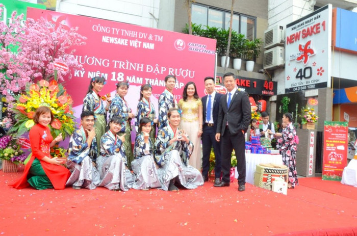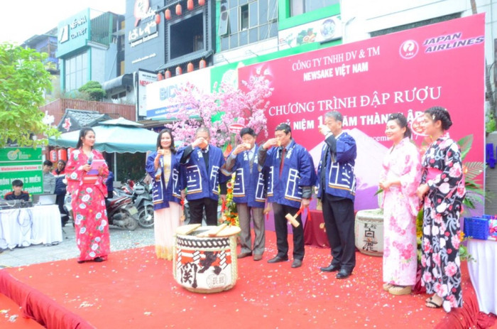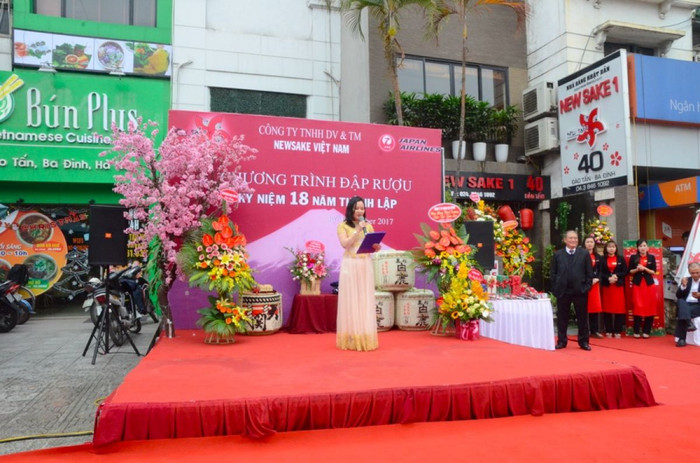 Ông Phan Sĩ Kiên - Đại diện của Newsake đã lên phát biểu và tuyên bố nghi thức đập rượu Sake. Bà Nguyễn Thị Hương Lan, ông Phan Sỹ Kiên, và 4 khách mời khác đại diện lên thực hiện nghi thức.