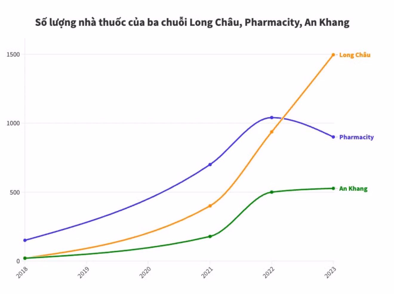 Tuy nhiên, đến thời điểm hiện tại, khi An Khang thuộc Thế Giới Di Động và Pharmacity của SK Group đang gặp khó khăn và nỗ lực tái cấu trúc để tìm kiếm điểm hòa vốn, chuỗi nhà thuốc Long Châu của FPT Retail lại ghi dấu ấn mạnh mẽ với việc mở rộng nhanh chóng lên gần 2.000 cửa hàng trên toàn quốc.