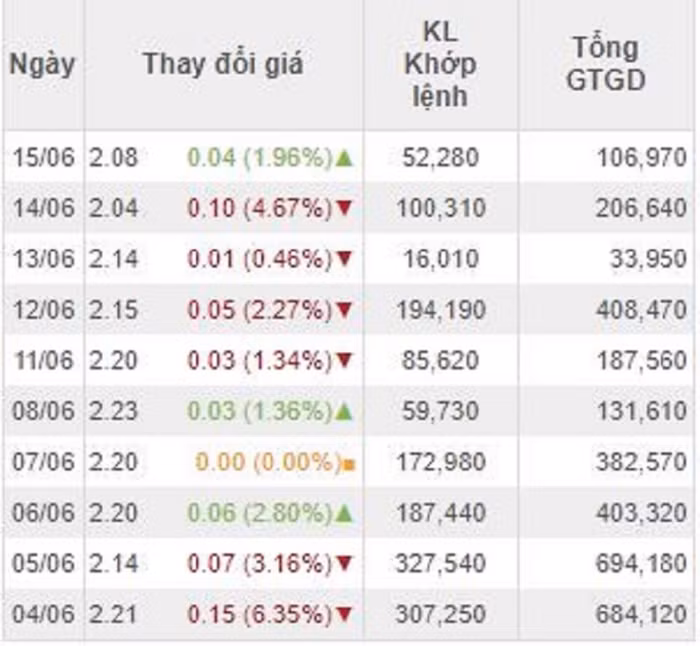 Lịch sử giao dịch 10 phiên gần nhất của KSH