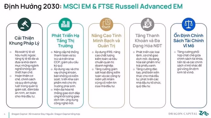 Để đạt mục tiêu này, Việt Nam đang thúc đẩy một lộ trình cải cách toàn diện: từ việc mở rộng giới hạn sở hữu nước ngoài, loại bỏ các rào cản pháp lý không cần thiết, đến việc nâng cấp hạ tầng tài chính – bao gồm hệ thống bù trừ trung tâm (CCP), sản phẩm phái sinh và cơ chế vay – cho vay chứng khoán.
