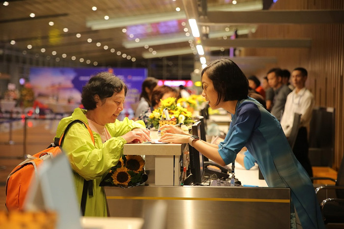 Sân bay Vân Đồn lọt top 5 sân bay có dịch vụ tốt nhất thế giới trong số các sân bay mà Vietnam Airlines khai thác. (Ảnh: Hỗ trợ thủ tục cho du khách tại sân bay Vân Đồn).