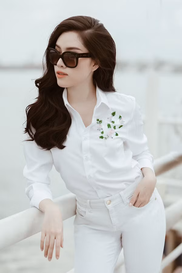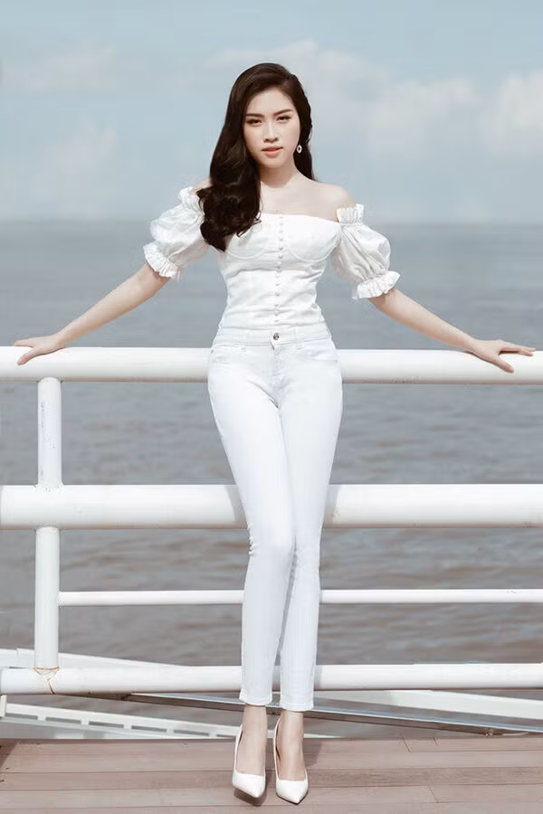 Chiếc áo trắng hở vai vừa đủ giúp bạn thu hút ánh nhìn của người khác khi dạo phố, kết hợp quần tây trắng và giày cao gót tạo sự trang nhã pha chút cá tính.