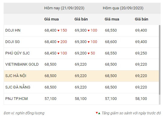 Cụ thể, giá vàng DOJI tại khu vực Hà Nội neo ở mức 68,4 triệu đồng/lượng mua vào và 69,3 triệu đồng/lượng bán ra. Tại TP Hồ Chí Minh, vàng thương hiệu này đang mua vào cao hơn 50.000 đồng nhưng bán ra mức tương tự như ở khu vực Hà Nội.