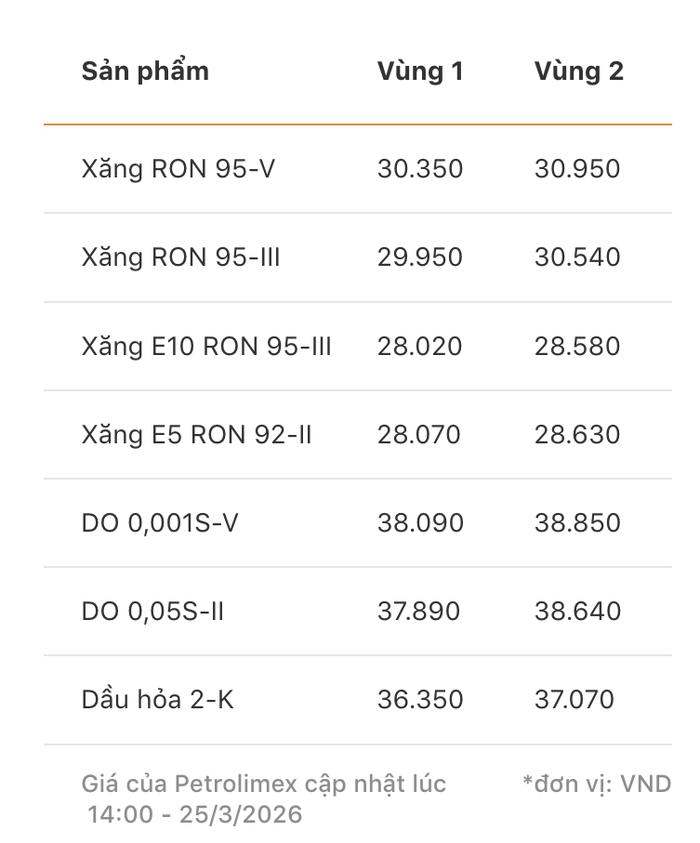 Giá xăng RON 95 giảm mạnh trong lần điều chỉnh lúc 14h ngày 25/3/2026
