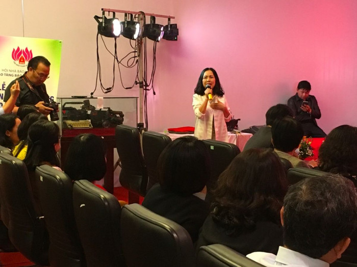 Bà Nguyễn Thục Hạnh - Tổng biên tập Báo Phụ nữ Việt Nam chia sẻ tại buổi giao lưu