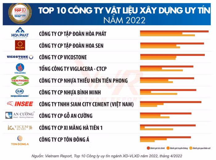 Top 10 Công ty Vật liệu xây dựng uy tín 2020 là kết quả nghiên cứu độc lập của Vietnam Report, được xây dựng dựa trên nguyên tắc khoa học và khách quan. Uy tín của các công ty được đánh giá dựa trên nghiên cứu về ảnh hưởng của các yếu tố tài chính, hình ảnh doanh nghiệp trên truyền thông và đánh giá của các bên liên quan trong ngành.