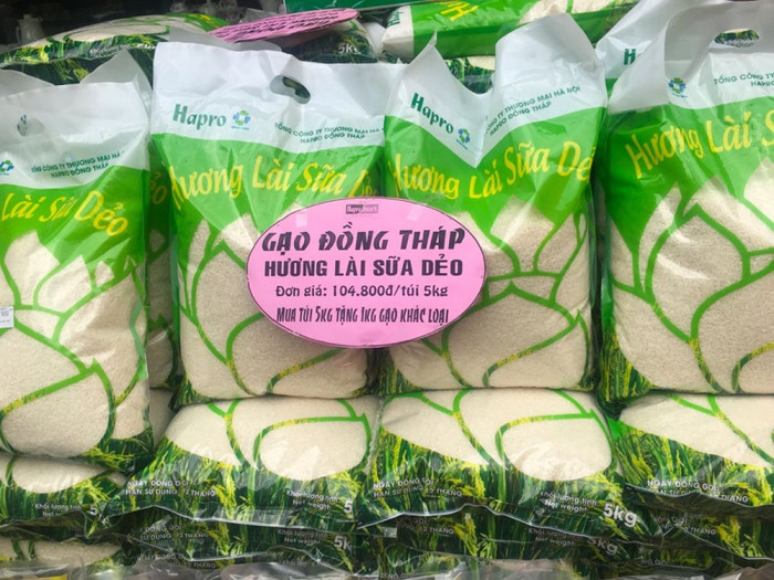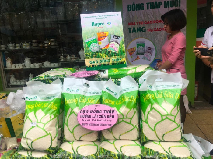 Tổng công ty Thương mại Hà Nội (Hapro) đã giới thiệu tới người tiêu dùng 3 dòng sản phẩm gạo chất lượng cao của tỉnh Đồng Tháp, được thu hoạch, chế biến, đóng gói tại Nhà máy xay sát và chế biến gạo xuất khẩu của Hapro đặt tại huyện Lai Vung.