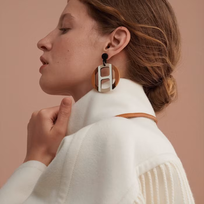 Thiết kế của dòng trang sức H Equipe thể hiện chữ cái biểu trưng cho thương hiệu, đồng thời gợi nhớ đến những chiếc phù hiệu trên áo giáp người hiệp sĩ. Lớp sơn phủ gồm 3 màu được lấy cảm hứng từ chiếc áo của những vận động viên đua ngựa, vẽ nên nét hiện đại của di sản Hermes.
