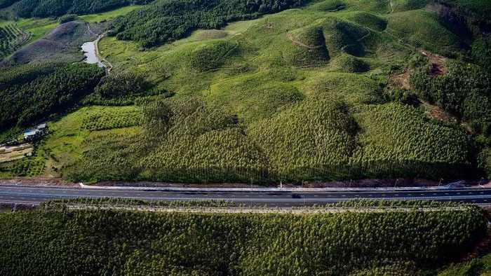 Sự pha trộn giữa nét hiện đại của tuyến cao tốc nghìn tỷ, của sự chỉn chu trong thi công với sự bình yên, mộc mạc của thửa ruộng đổi sắc suốt 4 mùa tạo nên bức tranh thiên nhiên vừa truyền thống, vừa hiện đại lôi cuốn đến say lòng.