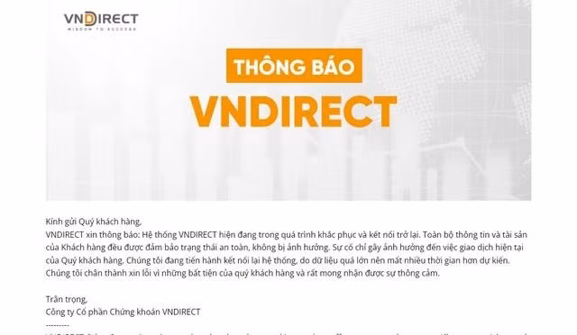 Để khắc phục sự cố, sáng 25/3, VNDirect phối hợp với các đối tác FPT, Viettel để xử lý, khắc phục, đảm bảo an toàn cho toàn bộ thông tin và tài sản của khách hàng.