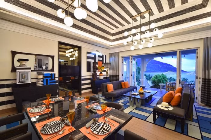 Với gói nghỉ dưỡng này, thượng khách có thể chọn nghỉ tại những căn biệt thự 3 phòng ngủ ở Vịnh Bãi Bắc với thiết kế nội thất gây ấn tượng mạnh mẽ được lấy cảm hứng từ những tuyệt tác của các nghệ sỹ nổi tiếng trường phái hậu hiện đại.