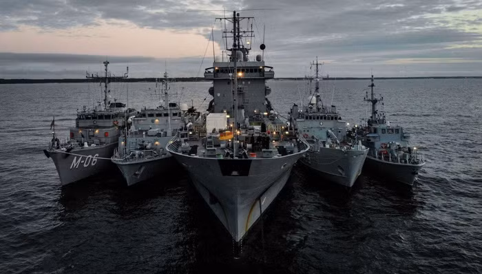 Năm chiến hạm tham gia diễn tập BALTOPS 2020. Từ trái sang phải LVNS Tālivaldis (Latvia), ENS Sakala (Estonia), FGS Werra (Đức), ENS Wambola (Estonia), ORP Druzno (Ba Lan).