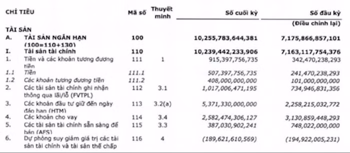 Theo báo cáo, hơn một nửa tổng tài sản của VNDirect là các khoản đầu tư nắm giữ đến ngày đáo hạn (HTM - chủ yếu là tiền gửi có kỳ hạn trên 3 tháng và dưới 1 năm) đạt 5.371 tỷ đồng - tăng hơn 3.000 tỷ đồng so với đầu năm, hơn 900 tỷ đồng tiền và tương đương tiền.