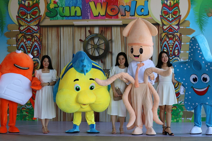 Đón du khách tại Ga đến Cáp treo trên đảo Hòn Thơm là các “linh vật biển” ngộ nghĩnh đáng yêu. Trải suốt dọc đường ra bãi biển, sự xuất hiện của những thổ dân với trang phục sặc sỡ, các vũ nữ với tràng hoa dài trên cổ... mời gọi du khách vào một miền lễ hội trên đảo Hawaii xa xôi.
