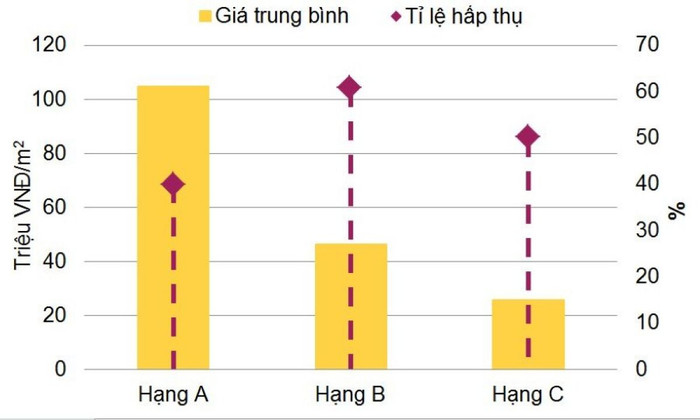 Giá bán và tỷ lệ hấp thụ tại phân khúc căn hộ để bán