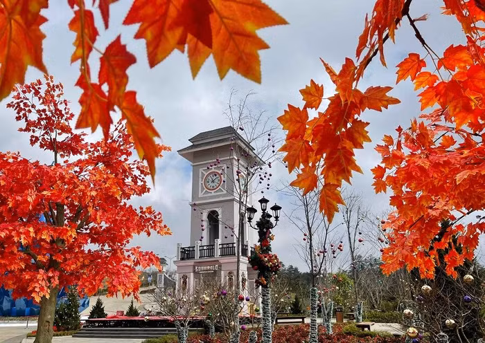 Vườn hoa bốn mùa rực đỏ màu hoa xác pháo cũng sẽ là điểm check-in dự kiến tiêu tốn kha khá bộ nhớ của những chiếc điện thoại hay máy ảnh, khi ngay giữa vườn hoa là một cây thông hoa khổng lồ cao 12 m, tô điểm thêm sắc màu lãng mạn cho mùa Giáng sinh.