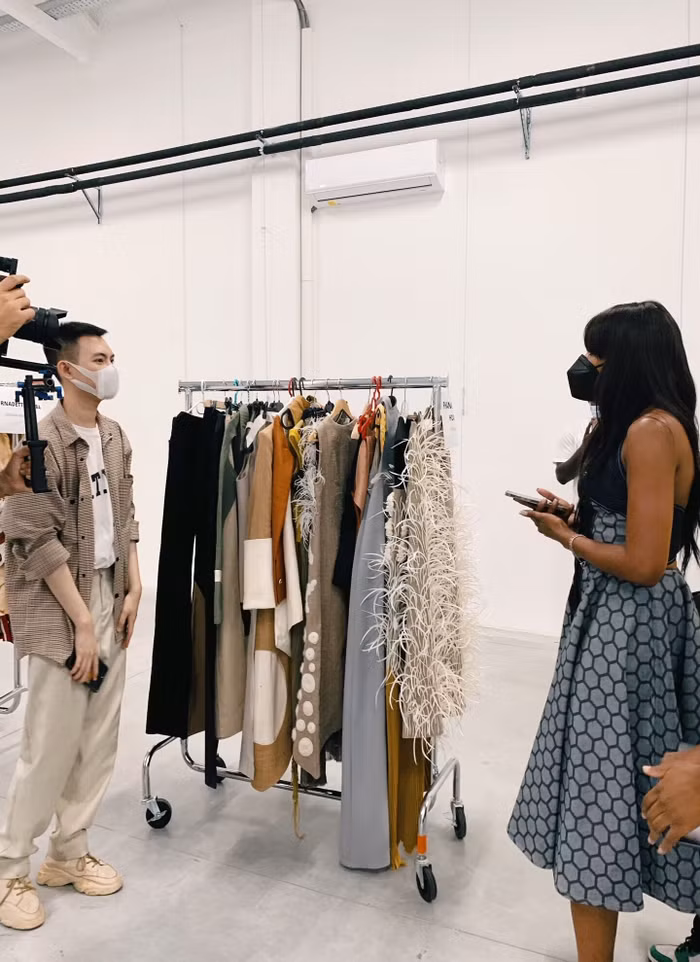 Trước show diễn, anh bất ngờ được giới thiệu BST của mình đến với tổng biên tập tạp chí Vogue quyền lực nhất làng thời trang thế giới Anna Wintour và siêu mẫu hàng đầu thế giới Naomi Campbell.