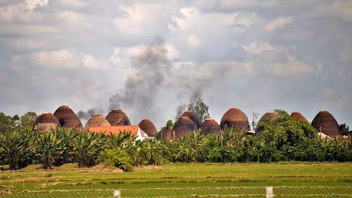 Về đến Mang Thít - làng nghề nằm dọc ven sông Cổ Chiên, kênh Thầy Cai, ngay từ đầu làng anh đã có thể thấy những lò nung đỏ au, trên nền xanh đất trời tạo nên một bức tranh rất đỗi thân thương. Hệ thống lò gạch, gốm Mang Thít có tuổi đời hàng trăm năm, được biết đến là nơi sản xuất gạch, gốm đỏ nổi tiếng và lớn nhất vùng Đồng bằng sông Cửu Long. Thời hoàng kim - những năm 1980, nơi đây có trên dưới 1.000 cơ sở sản xuất với khoảng 3.000 miệng lò, cung cấp vật liệu xây dựng cho cả vùng phía nam và xuất khẩu sang nhiều nước trên thế giới như Thái Lan, Miến Điện, Campuchia… Dân gian thường hay gọi nơi đây là "vương quốc gạch ngói/lò gạch".