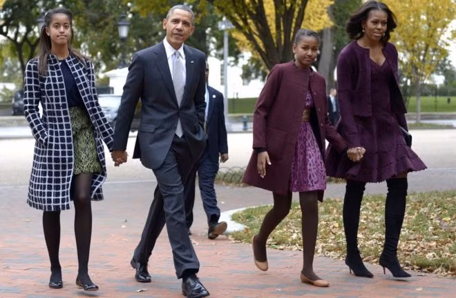 Ông Obama cùng vợ và hai con gái – Malia (trái), Sasha (Ảnh: Getty)