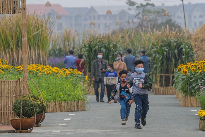 Trong ngày đầu mở cửa, người dân Hà Nội hào hứng tham quan, trải nghiệm không khí mùa xuân ấm áp, sum vầy tại đường hoa Home Hanoi Xuân 2021. Không gian trữ tình, đặc trưng các miền quê hương tươi đẹp, hoa đồng, cỏ nội đặc sắc đưa mọi người về với không gian bình yên ấm no ngày xuân, tận hưởng không khí Tết xưa của một Hà Nội hào hoa, thanh lịch.