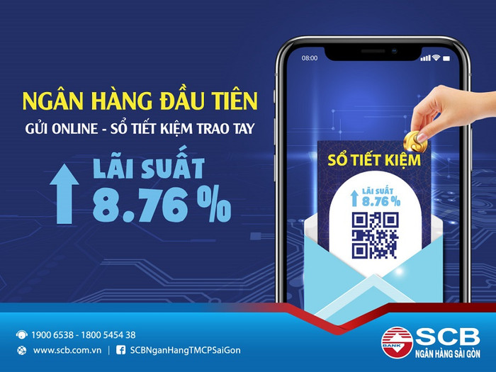 Sản phẩm “Tiền gửi tiết kiệm online” của SCB cũng thu hút các Khách hàng đang gửi tiết kiệm tại quầy chuyển sang tham gia gửi online vì Khách hàng đã hoàn toàn yên tâm giao dịch khi nhận được Sổ tiết kiệm Online có mã QR qua email. Khách hàng sử dụng sản phẩm “Tiền gửi tiết kiệm online” của SCB sẽ được hưởng lãi suất bậc thang theo kỳ hạn và số tiền gửi với lãi suất vượt trội lên đến 8,76%/năm, cao hơn so với gửi tiết kiệm tại quầy.