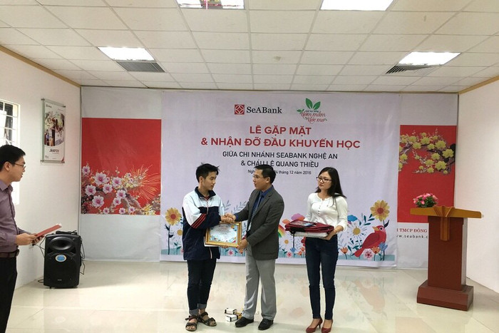Đại diện SeABank trao học bổng “Ươm mầm ước mơ” tại Nghệ An.