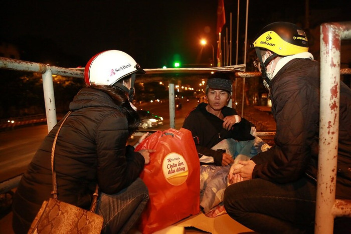 Xuất phát từ 9h30 tối, Đoàn CBNV Hội Sở và Sở Giao dịch SeABank gặp những người vô gia cư đang co ro trên những manh chiếu rách, trong những chiếc áo mưa hay trên những bậc thềm của cửa hiệu nào đó, hay dưới những gầm cầu tối tăm. Những ánh mắt biết ơn, những nụ cười, những cái nắm tay giúp CBNV SeABank cảm thấy không chỉ những người vô gia cư được sưởi ấm mà trái tim mình cũng được sưởi ấm trong cái rét đầu đông. Trong khi đó, chi nhánh Hà Đông, Láng Hạ, Thanh Xuân, Cầu Giấy, Đống Đa cũng triển khai những nhóm nhỏ trên các tuyến phố của địa bàn chi nhánh.