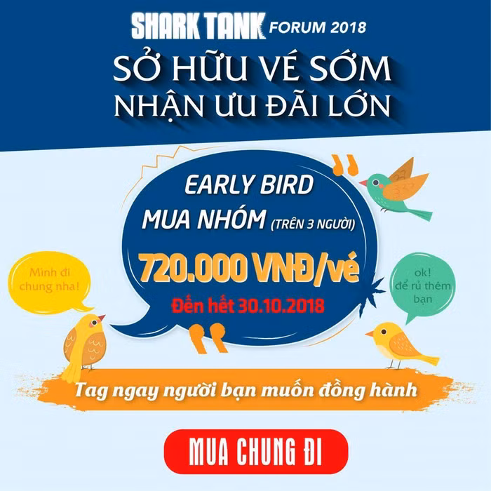| SHARK TANK là chương trình truyền hình thực tế kêu gọi vốn đầu tư vào các công ty khởi nghiệp, đã được phát sóng tại hơn 40 quốc gia. Tại Việt Nam, SHARK TANK mùa 1 và 2 đã kết nối thành công cam kết đầu tư lên đến 300 tỷ đồng (tương đương 13 triệu Đô la Mỹ) cho các công ty khởi nghiệp tiềm năng với các nhà đầu tư, với 49 giao dịch. SHARKTANK FORUM 2018 LÀ SỰ KIỆN LỚN NHẤT TRONG NĂM của chương trình với dự kiến khoảng 1.000 khách tham dự. Ưu đãi đặc biệt cho các Fan của Thương gia Online. Giảm 10% giá vé khi nhập code: "ST-TGONLINE" Link đăng ký Online: https://ticketbox.vn/shark-tank-forum-2018?fbclid=IwAR3ldiE4TUtThD-jRcxGsdp5v7C0jiiIFfLpHNetFp6WfJfqn_cbmH97SKU |