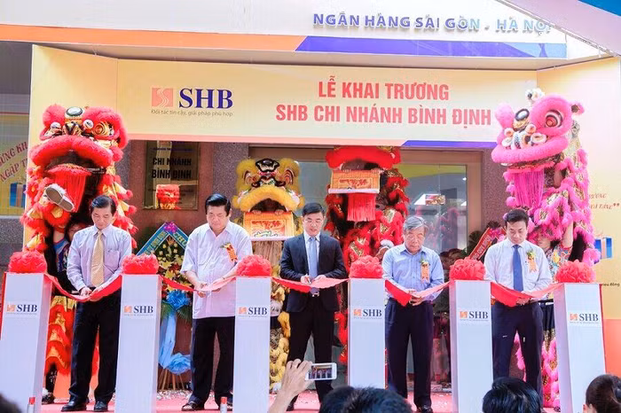 Ông Trần Châu - Phó Chủ tịch UBND tỉnh Bình Định; ông Vũ Hoàng Hà - Nguyên UVTW Đảng, nguyên Bí thư Tỉnh ủy tỉnh Bình Định; ông Nguyễn Tấn Hiểu - Nguyên Phó Bí thư Tỉnh ủy tỉnh Bình Định, Chủ tịch Hội Bảo trợ bệnh nhân nghèo tỉnh Bình Định; ông Nguyễn Trà Dương - Phó Giám đốc Ngân hàng Nhà nước Việt Nam chi nhánh Bình Định; ông Nguyễn Văn Lê – Tổng Giám đốc SHB cắt băng khai trương SHB Bình Định