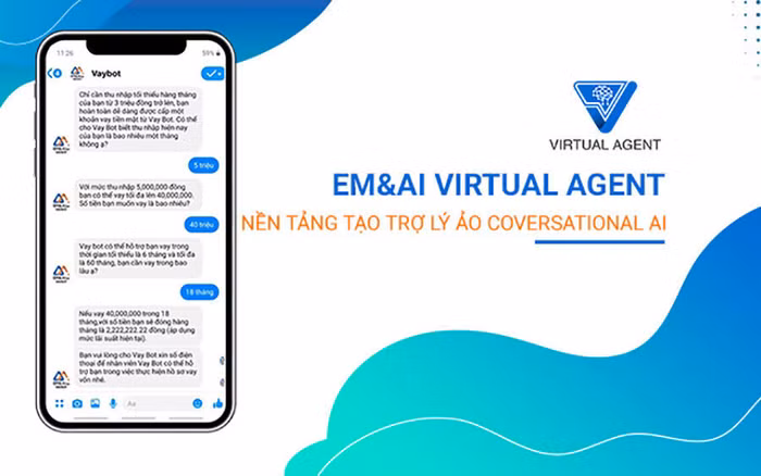 Nền tảng Virtual Agent của EM&AI kết hợp với các mô hình AI hỗ trợ tổng đài viên giao tiếp với khách hàng bằng tin nhắn (chatbot) hoặc gọi điện (voicebot), xử lý ngôn ngữ tự nhiên, tự động nắm bắt ý định, thái độ và cảm xúc và có thể tương tác theo ngữ cảnh cũng như học hỏi từ nhân viên thông qua tính năng trò chuyện kết hợp (Hybridchat). Khách hàng không phải mất nhiều thời gian đợi phản hồi.