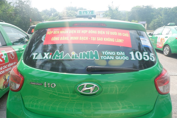 Chiều nay 16/9/2019, nhiều tài xế taxi truyền thống ở Hà Nội đã dán khẩu hiệu "Hộp đèn nhận diện xe hợp đồng điện tử dưới 9 chỗ: Công bằng, minh bạch - tại sao không làm?" trên kính xe. Nhiều hãng taxi truyền thống tại Hà Nội như: Mai Linh, Vina, G7, Vic, Thanh Nga, liên minh taxi Việt đều đồng loạt dán băng rôn đòi được đối xử công bằng với taxi công nghệ.