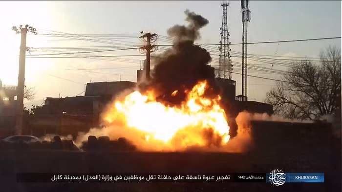 Một chiếc xe buýt chở các nhân viên của Văn phòng Thống kê Trung ương Afghanistan cũng bị tấn công bằng một vụ nổ bom tự chế IED ở thủ đô, IS tuyên bố nhận trách nhiệm vụ tấn công.