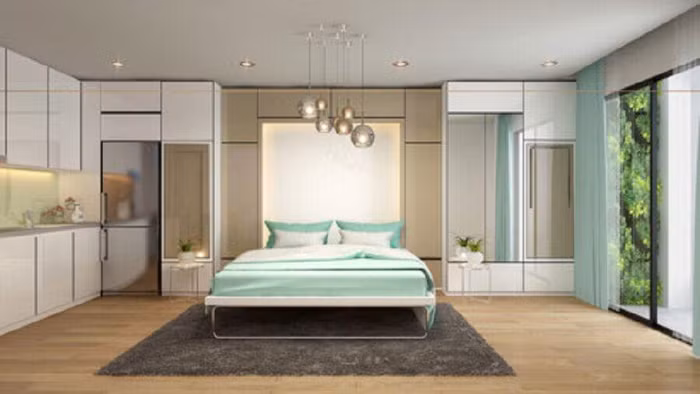 Căn hộ Limo được thiết kế linh hoạt vừa làm phòng khách và phòng ngủ với giường gấp gắn tường.