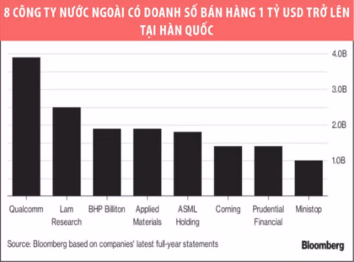 Không có gì ngạc nhiên khi các hãng công nghệ chiếm phần lớn trong danh sách các công ty nước ngoài có doanh số bán nhiều hơn 1 tỷ USD tại Hàn Quốc.