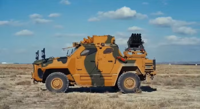 Xe chiến thuật bánh lốp BMC Vuran của Thổ Nhĩ Kỳ gắn pháo phản lực MLRS có khả năng phóng liên tiếp 12 quả rocket cùng một lúc và đang nằm trong biên chế của Lực lượng vũ trang Thổ Nhĩ Kỳ.