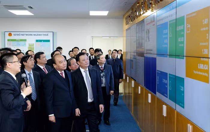 Thủ tướng thăm Trung tâm giám sát hệ thống Công nghệ thông tin Tổng cục Thuế. Ảnh: VGP/Quang Hiếu