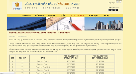 Công ty Văn Phú đưa thông báo về dự án với địa chỉ 177 Trung Kính