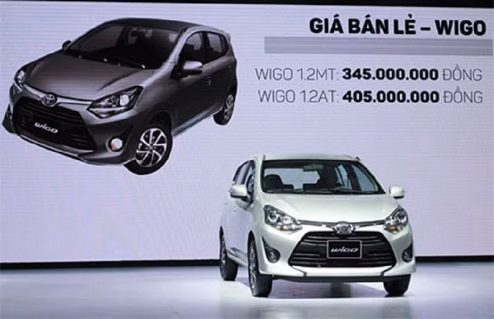 Tại Việt Nam, Toyota giới thiệu 2 phiên bản đi kèm 6 lựa chọn màu ngoại thất. Trong đó, Wigo 1.2AT có giá 405 triệu đồng, bản 1.2MT rẻ hơn với 345 triệu đồng.